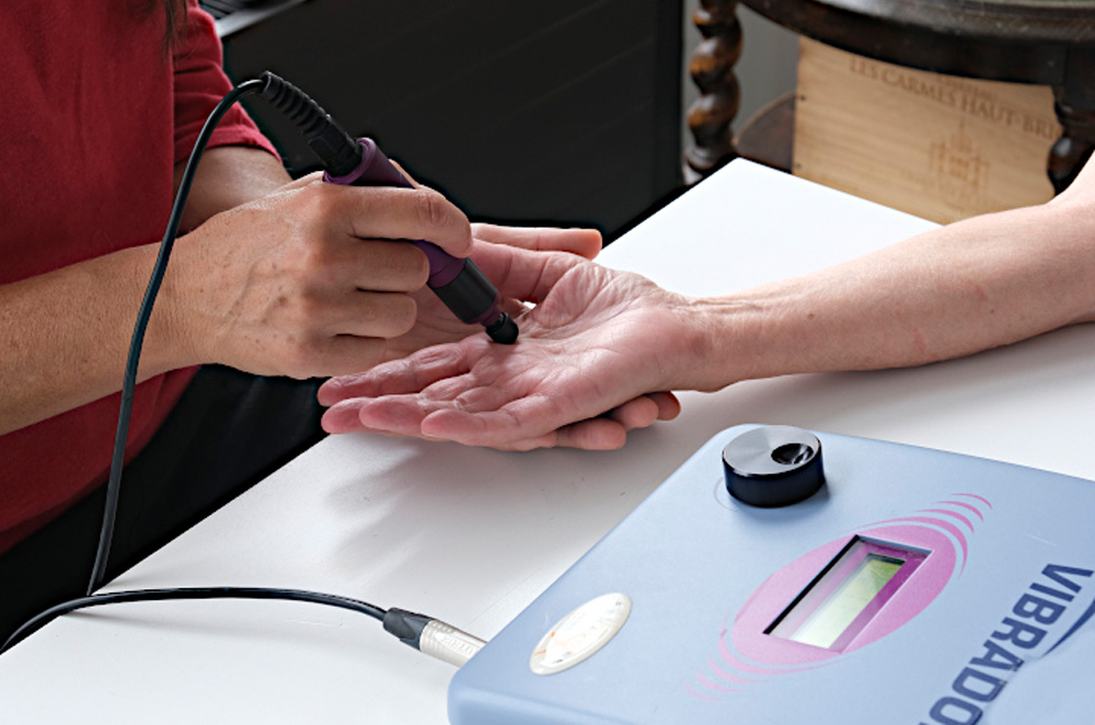 Les vibrations peuvent contribuer à désensibiliser une peau trop sensible ou, au contraire, à resensibiliser une zone engourdie. Elles sont également utiles pour atténuer certaines douleurs musculaires et neuropathiques.
