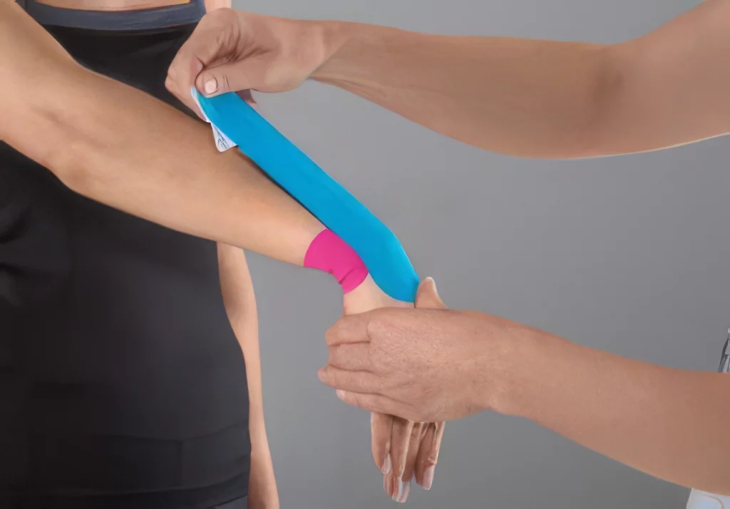 Le tape, ou taping, est une bande élastique collée sur la peau pour soutenir un muscle, une articulation ou améliorer la circulation. Il ne bloque pas les mouvements, mais aide à soulager la douleur, réduire un œdème, ou guider le corps dans de meilleurs gestes. Il peut aussi favoriser la récupération après une blessure.